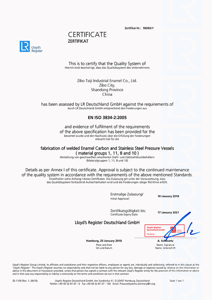 淄博太極工業搪瓷有限公司專業制造搪玻璃設備、氟塑料設備及碳鋼、不銹鋼壓力容器的大型企業。現有員工1000余人,注冊資金11900萬元,占地600畝,生產車間19萬平米,凈資產超20億元。太極以人為本,單用于職工的居住生活投入已達3億,使工者有其房,家人生活及孩子....[查看更多]